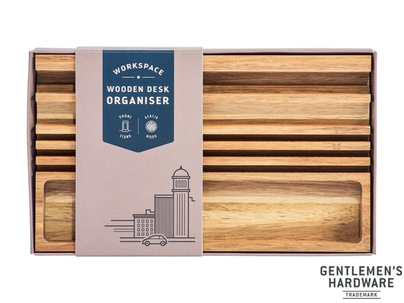 El organizador de escritorio fabricado en madera de acacia de la marca Gentlemen's Hardware es ideal para tenerlo todo ordenado sin necesitar la mitad de tu escritorio.
