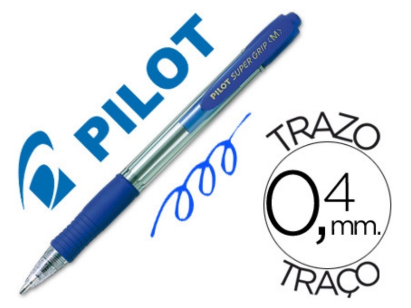 Boligrafo Pilot Super Grip de tinta azul y carcasa en colorazul.