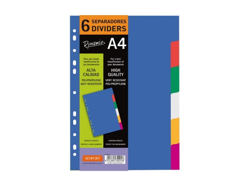 6 separadores en tamaño A4, de distinto color para diferenciar tus asignaturas.