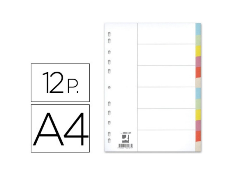 Juego de 12 separadores de cartulina de 175 g/m2 en tamaño A4.