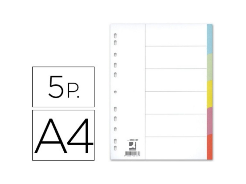 Juego de 5 separadores de cartulina de 175 g/m2 en tamaño A4.