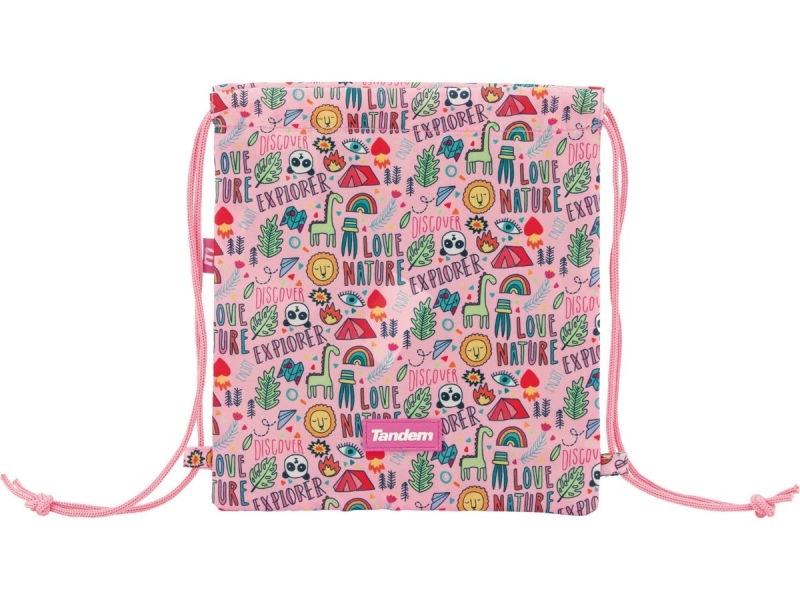 Consta de un compartimento principal que se cierra con las cuerdas que hacen de tirantes, haciendo de ella una mochila super versátil y práctica.