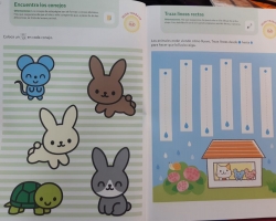 Este cuaderno de Edelvives contiene actividades que estimulan la concentración, el razonamiento y la psicomotricidad fina, pero además, una vez terminada cada actividad puedes aprovechar lo que ha hecho para que reconozca los animales, los colores, diferenciar los tamaños de las figuras y contar las cosas que ve.