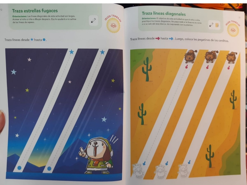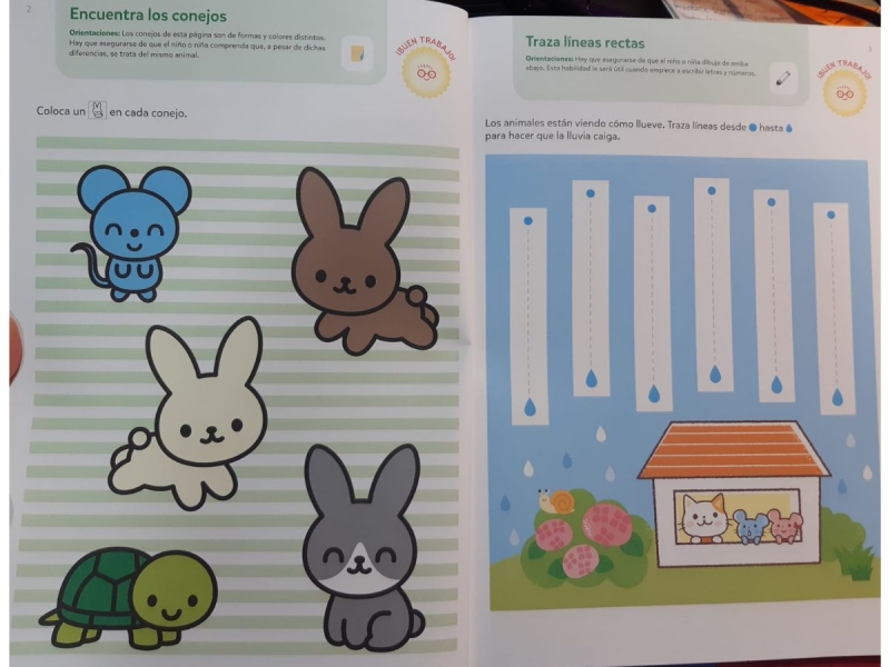 El nivel de dificultad de las tareas se va incrementando para que los niñ@s sientan que avanzan, logro a logro. Es recomendable, aunque no esencial, que empiece a trabajar el cuaderno por el principio.