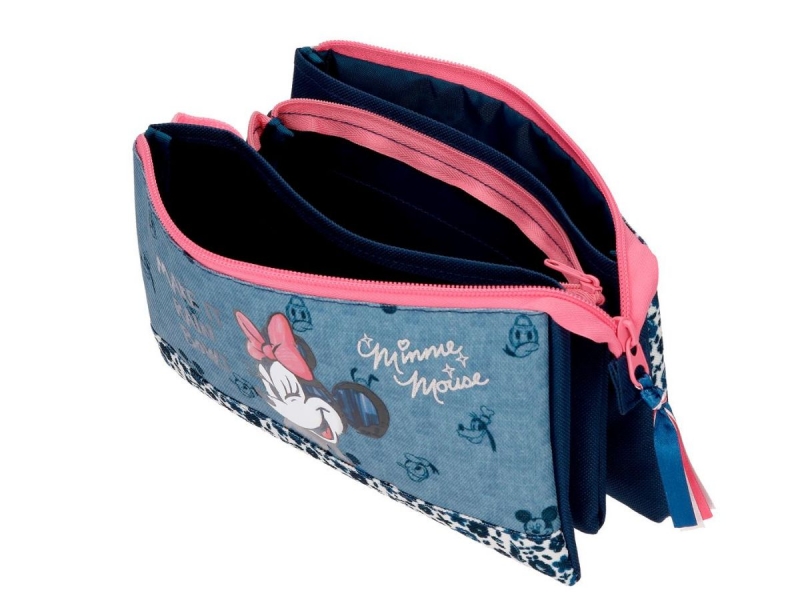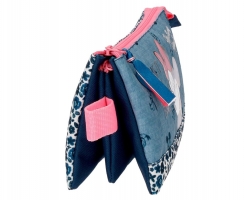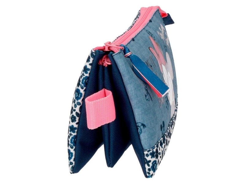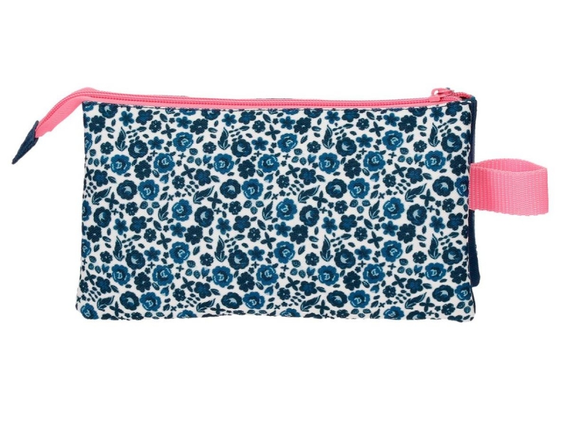 Consta de tres compartimentos unidos por una cremallera para que puedas meter cada cosa en uno de ellos y no se mezcle todo.