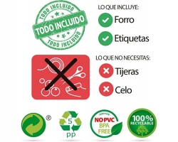 Incluye solapa marcapáginas, 3 tarjetas identificadoras y borde adhesivo para fijación de seguridad (sin dañar el libro).
