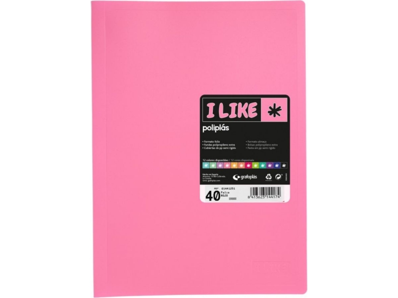 Carpeta de fundas ideal para tener ordenados tus apuntes y trabajos para tamaño DIN A4 o folio.