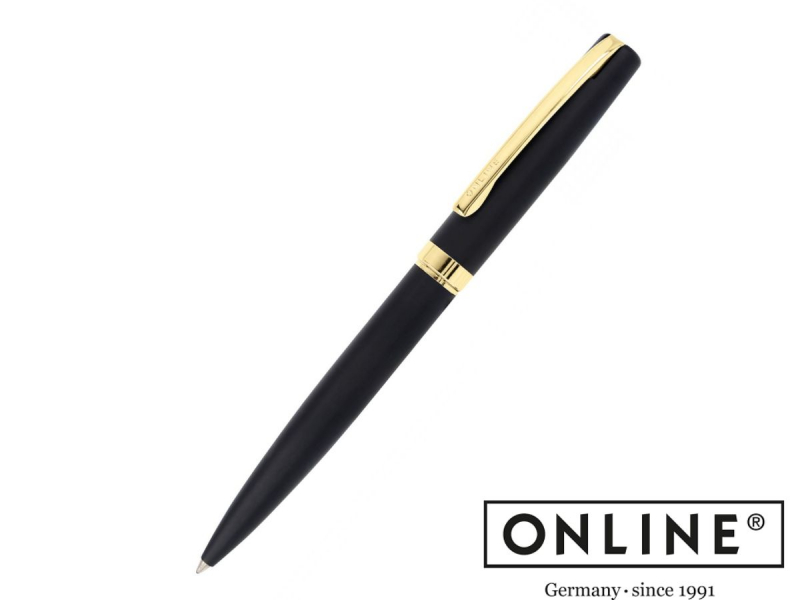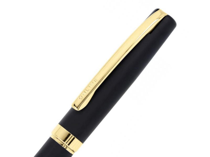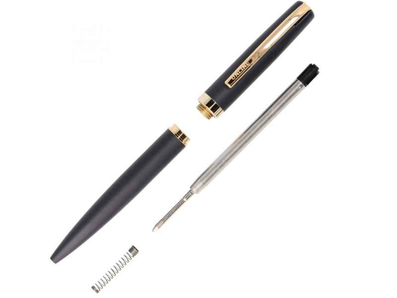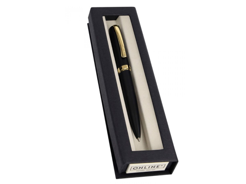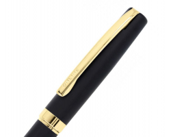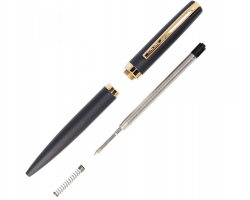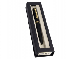 Icónico bolígrafo con su mítico diseño en negro mate y detalles dorados, sobrio, sofisticado y elegante.