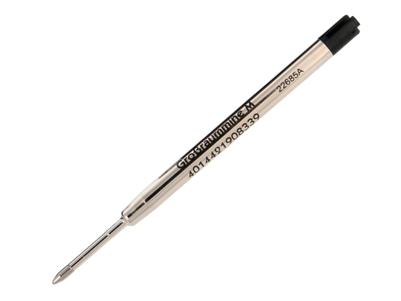 Cuerpo de acero inoxidable ideal para una escritura limpia, rápida y homogénea mediante carga de bolígrafo negro king size.
