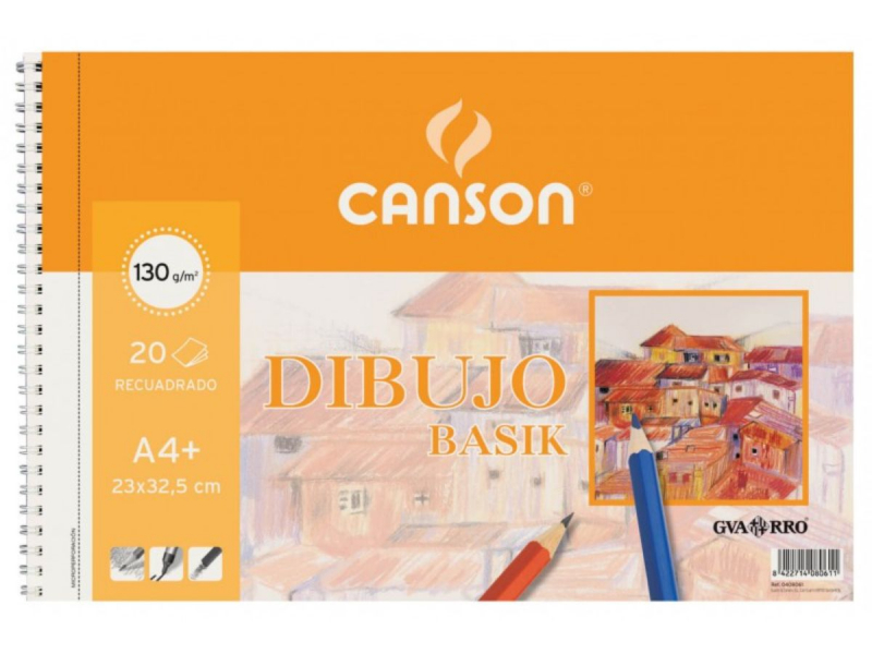 Bloc de dibujo Basik din AA(23 x 32.5 cm), en espiral y con recuadro.