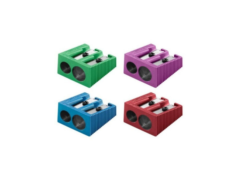 El sacapuntas doble tiene dos cuchillas de acero al carbono afiladas y resistentes, ideal para todo tipo de lápices de entre 0.8 y 1 cm de grosor.