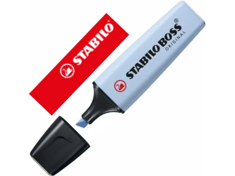 Marcador stabilo color azul nublado, de punta biselada con dos anchos de línea, de 2 y 5 mm, lo que te permite marcar varios tamaños de texto o trazar líneas de diferentes grosores.