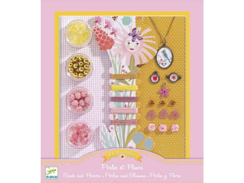 Con muchas cuentas, hilos de colores y cuentas especiales con forma de flores.