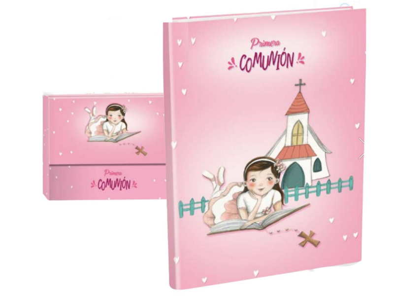 El día de tu Primera Comunión podrás llevar de manera cómoda y segura tu libro de firmas gracias a su maletín.