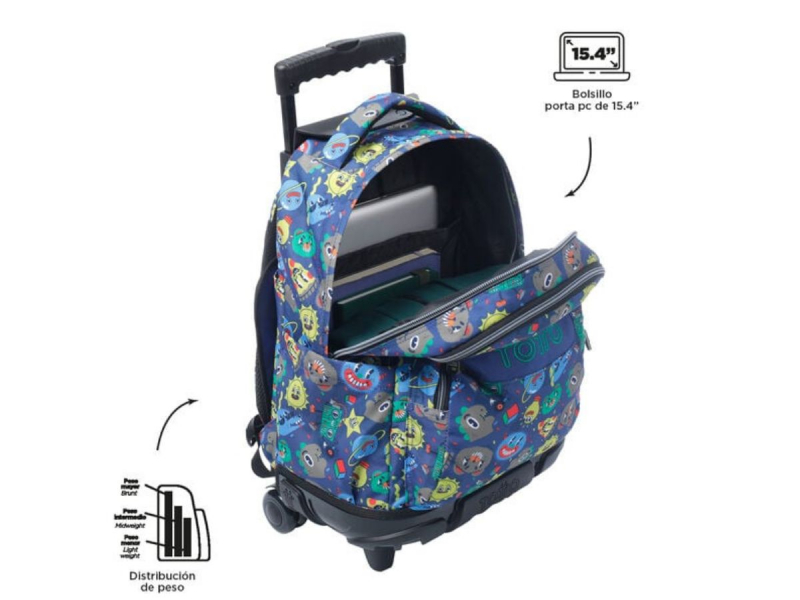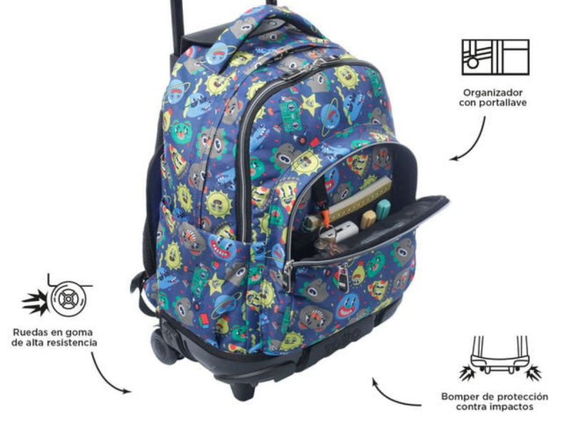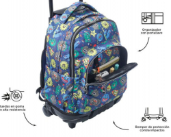 Tu compañera perfecta para ir al cole, una mochila de ruedas de goma que hará más sencillo tu paseo hasta el cole con un diseño chulísimo ideal para el día a día.