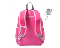 Consta de dos compartimentos para que reparta todo su material escolar. El más grandes para la carpeta de fichas, fundas, estuche... y los frontales más pequeños para pequeños objetos, el almuerzo y objetos personales.