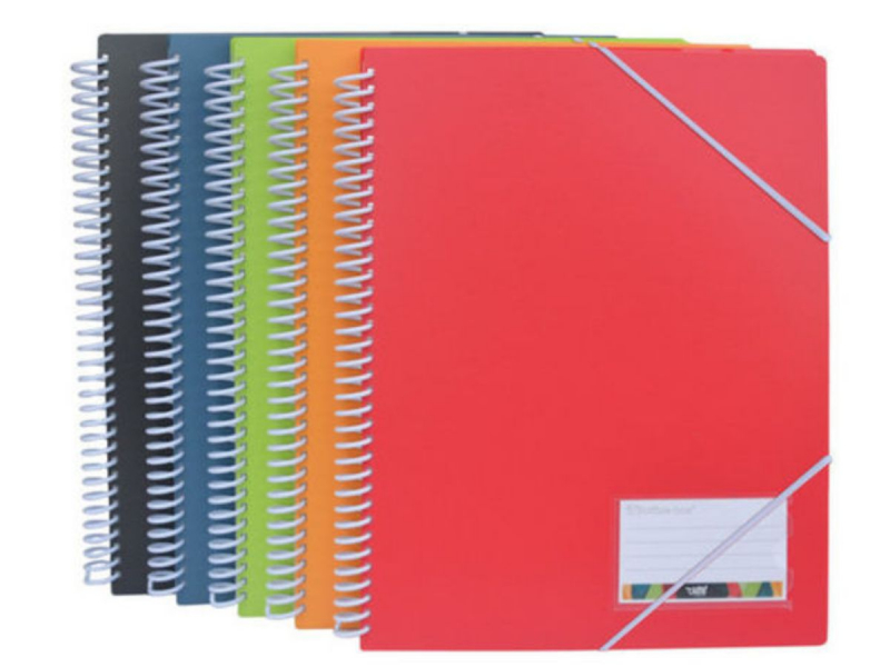 Carpeta de fundas con espiral ideal para tener ordenados tus apuntes y trabajos para tamaño DIN A4 o folio.