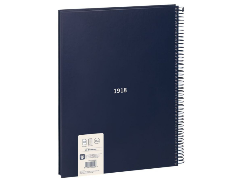 Cuaderno A4 con espiral metálica y tapa dura mate.