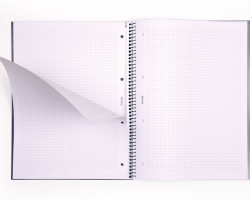 80 hojas de papel cuadriculado de 5x5 microperforadas para arrancarlas y troqueladas para luego poder archivarlas.