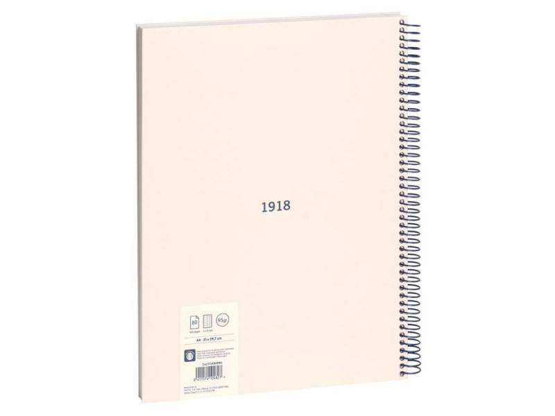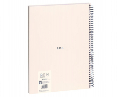 Cuaderno A4 con espiral metálica y tapa dura mate.