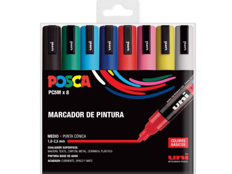 Estuche 8 Posca punta cónica tamaño medio desmontable.