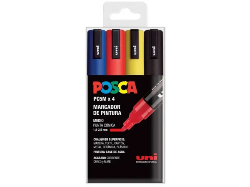 Estuche 4 Posca punta cónica tamaño medio desmontable.