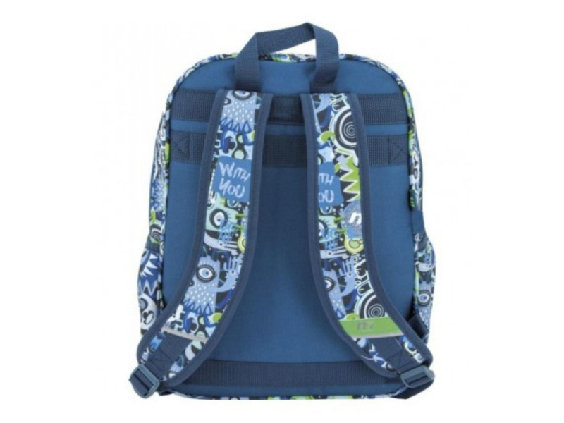 Consta de tres compartimentos para que reparta todo su material escolar. Los más grandes para la carpeta de fichas, fundas, estuche... y el frontal más pequeño para pequeños objetos, el almuerzo y objetos personales.
