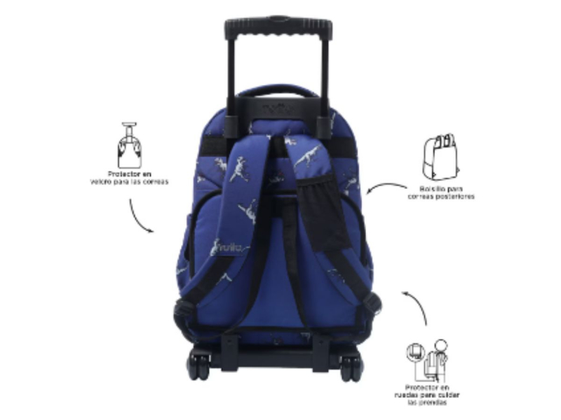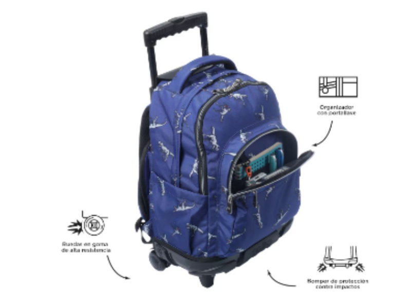 Tu compañera perfecta para ir al cole, una mochila de ruedas de goma que hará más sencillo tu paseo hasta el cole con un diseño chulísimo ideal para el día a día.