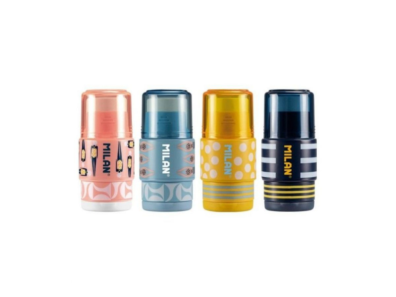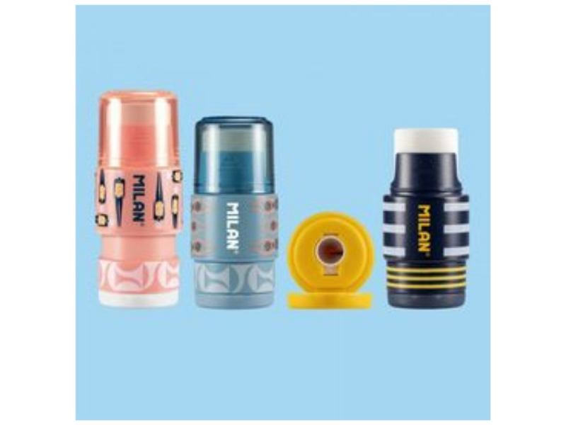 Combinación de goma y sacapuntas con depósito. El sacapuntas tiene una cuchilla de acero al carbono afilada y resistente, ideal para todo tipo de lápices.Su cuchilla dispone de un sistema de seguridad que evita que se pueda separar la hoja del cuerpo del sacapuntas, siendo óptimo para uso escolar.Goma de recambio disponible.Colores surtidos