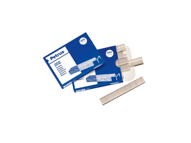 Caja de 1000 grapas tipo petrus 202 para mini grapadora con capacidad para 5 hojas.