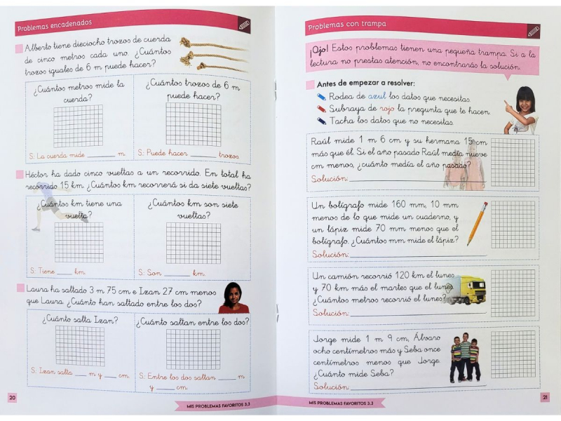 Mis problemas favoritos es una colección de cuadernos los cuales tratan de problemas que parten del mundo más cercano al niño y llegan a la comprensión del mundo real. Mediante los problemas planteados, el niño/a practicará una gran diversidad de casos relacionados con el tiempo o la longitud entre otros para afianzar conocimientos antes del próximo curso.