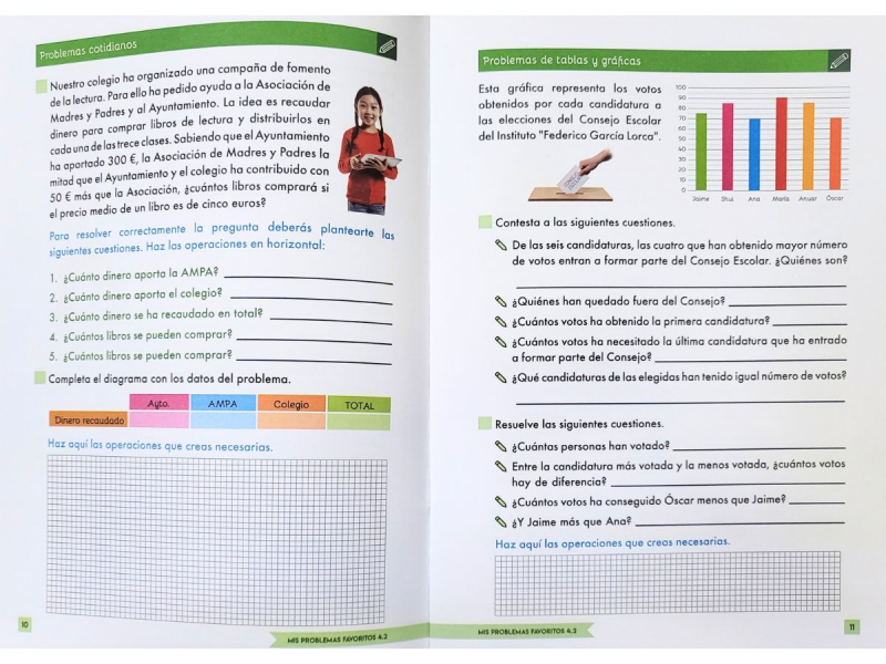 Mis problemas favoritos es una colección de cuadernos los cuales tratan de problemas que parten del mundo más cercano al niño y llegan a la comprensión del mundo real.