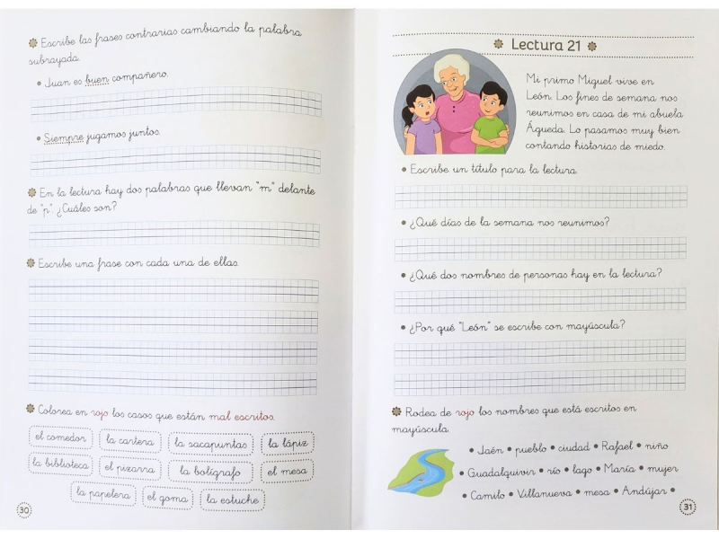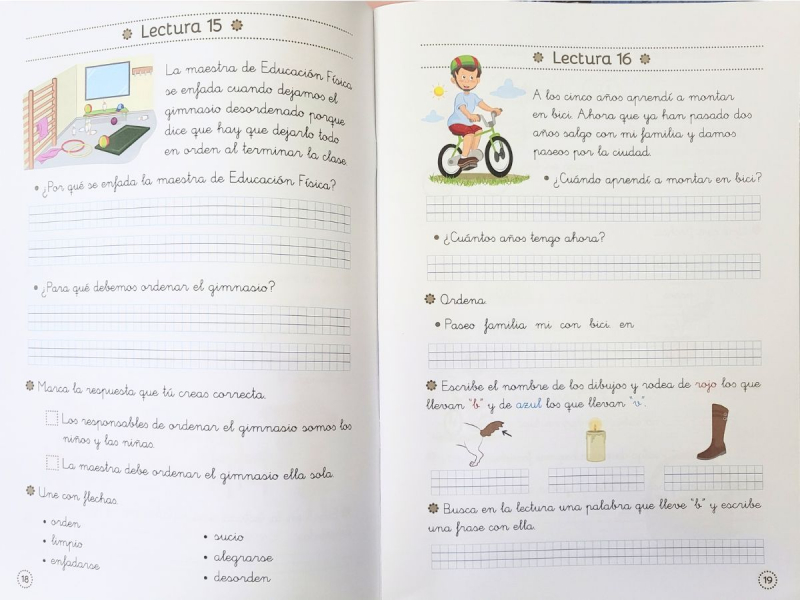 En este cuaderno podrás practicar la gramática, el vocabulario y la ortografía mediante una gran variedad de ejercicios prácticos específicos con pauta Montessori y de cuadrados, ambas de 4mm