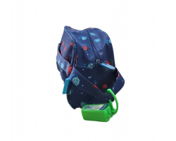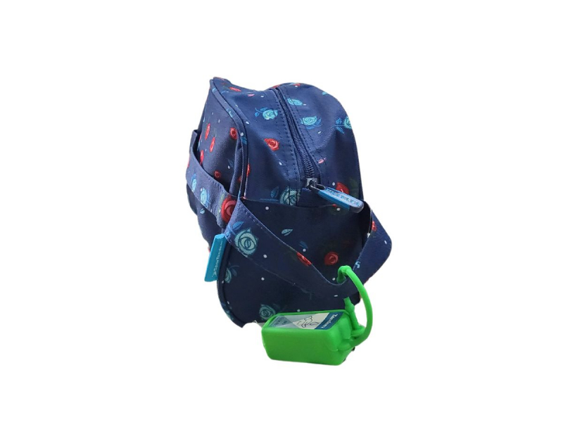 Consta de un compartimento de cremallera y de un asa para que puedas llevarla de la mano.
