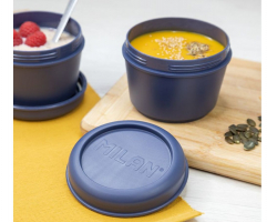 Las tapas y los recipientes son fácilmente apilables entre si.