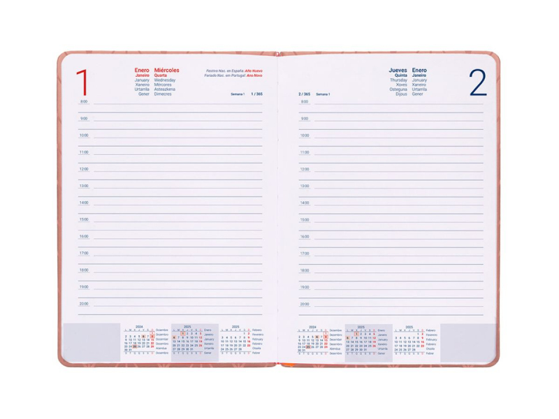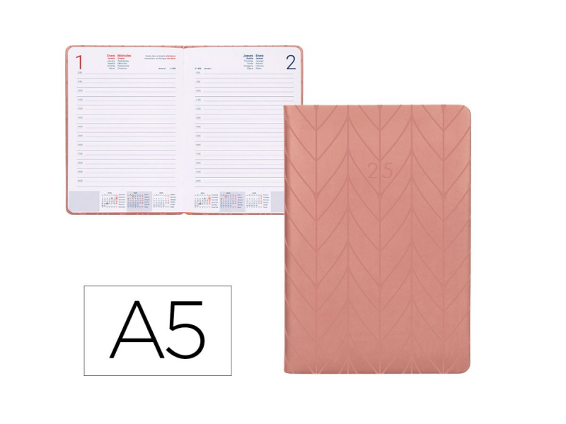 La agenda anual Lipsi de Liderpapel rosa melocotón, en formato A5, es perfecta para organizar tu semana al detalle, gracias a su formato de día página, que permite escribir gran cantidad de información en un espacio reducido.