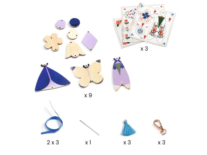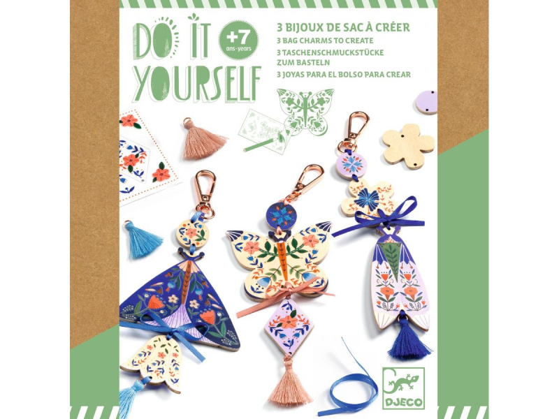 3 joyas de madera que se realizan con más de 100 calcomanías y accesorios, para colgar del bolso o para usar como llavero.