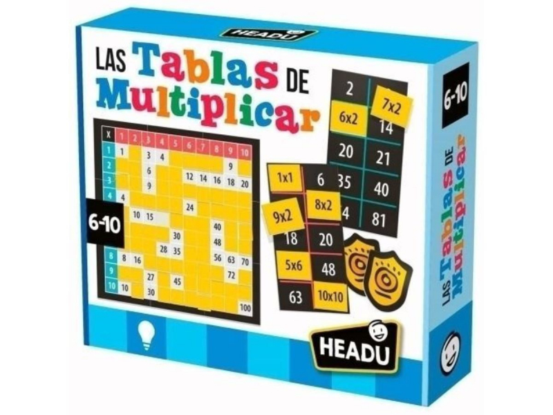 CONTENIDO: 10 CARTONES, 100 CARTAS DE MULTIPLICAIONES, 100 CUADRADITOS AMARILLOS, 1 GRAN TABLA PITAGÓRICA, 1 TABLERO DE MULTIPLICACIONES, 10 FICHAS SALVA-ERROR, 3 ESCARAPELAS, INSTRUCCIONES