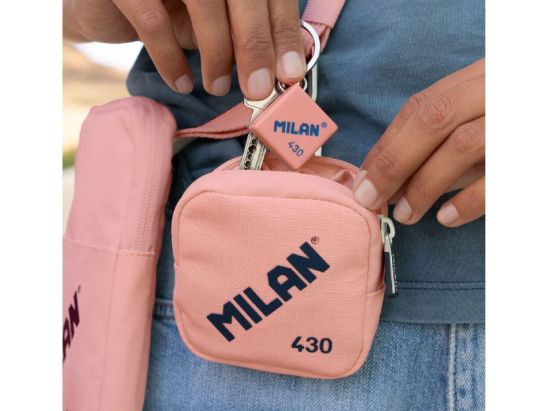 Inspirada en los colores y diseño originales de las gomas de borrar MILAN, fabricadas en España desde 1918, este monedero es ideal para dinero y tarjetas o incluso las llaves, gracias a su mosquetón lo puedes enganchar de los pantalones, al bolso o donde tú quieras.