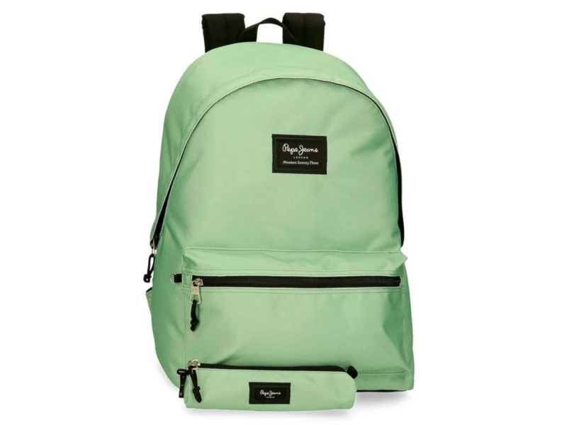 En la parte delantera tiene otro bolsillo más pequeño y viene con un estuche a juego para que tengas siempre organizado tu material escolar.