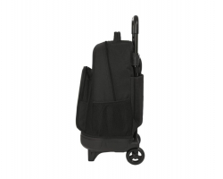 Consta de dos compartimentos de cremallera: el principal de gran capacidad para libros y libretas y el frontal, más pequeño para el bocata o el estuche. También consta de dos bolsillo laterales abiertos para la botella de agua y el paraguas.