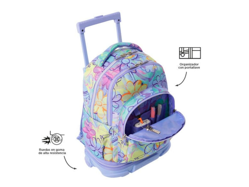 Tu compañera perfecta para ir al cole, una mochila de ruedas de goma que hará más sencillo tu paseo hasta el cole con un diseño chulísimo ideal para el día a día.