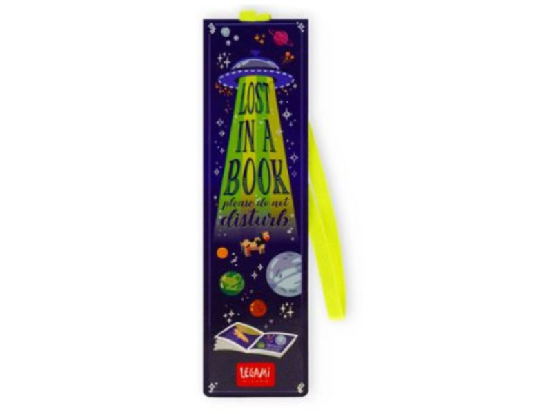 No pierdas la página de tu libro con este marcapáginas de nave espacial y la frase de ''Lost in a book please do not disturb" (Perdido en un libro, por favor no molestar)