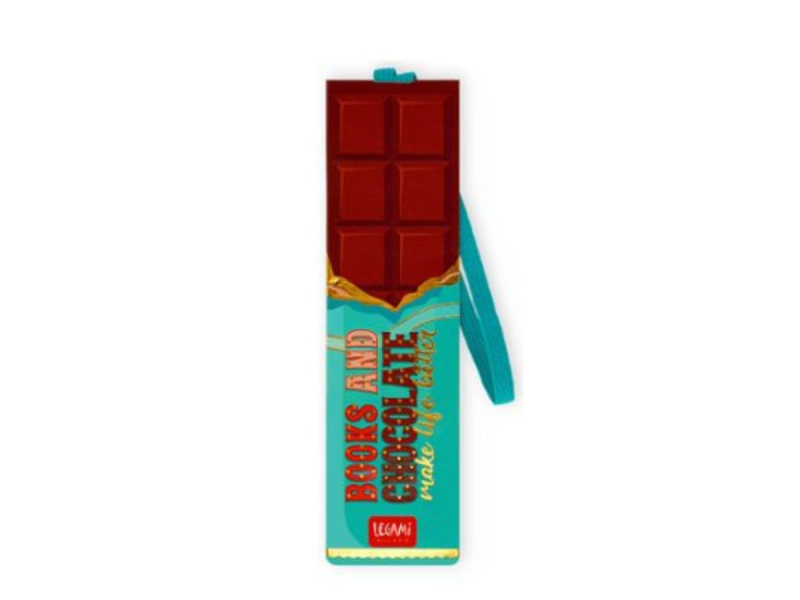 No pierdas la página de tu libro con este marcapáginas de tableta de chocolate y la frase ''Books and chocolate make life better" (Los libros y el chocolate hacen la vida mejor)