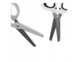 Fabricadas en acero inoxidable, cuentan con todas las protecciones para que no te hagas daño, desde su punta redondeada hasta la funda de plástico que protege la hoja y tus dedos. Además, el mango presenta un precioso diseño de gato antideslizante para que tu set escolar sea el más bonito.
