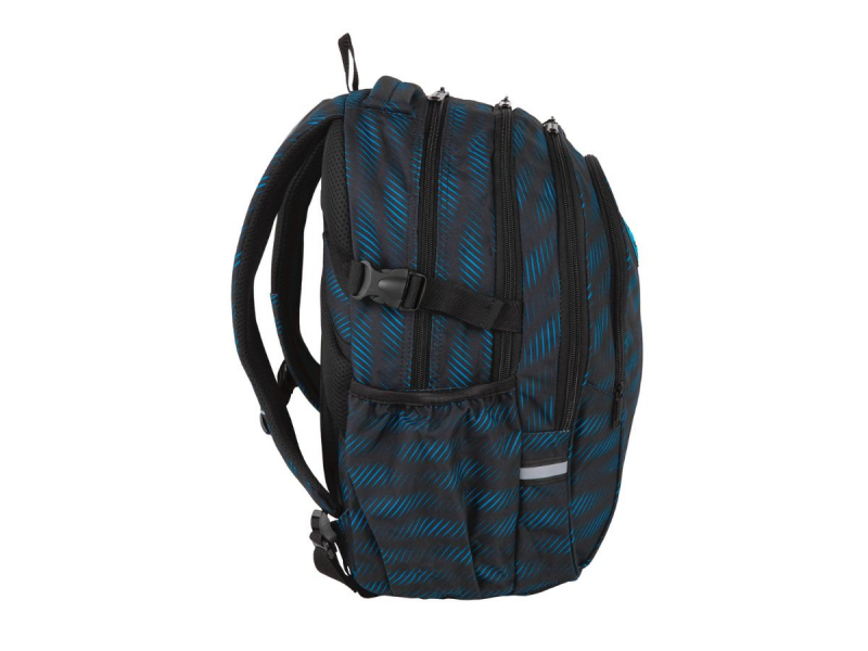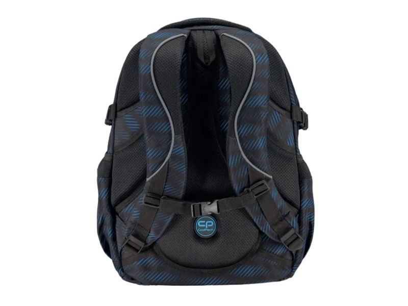 La mochila de Coolpack con diseño en negro y azul es genial para tener todas tus cosas del colegio en orden y seguras.