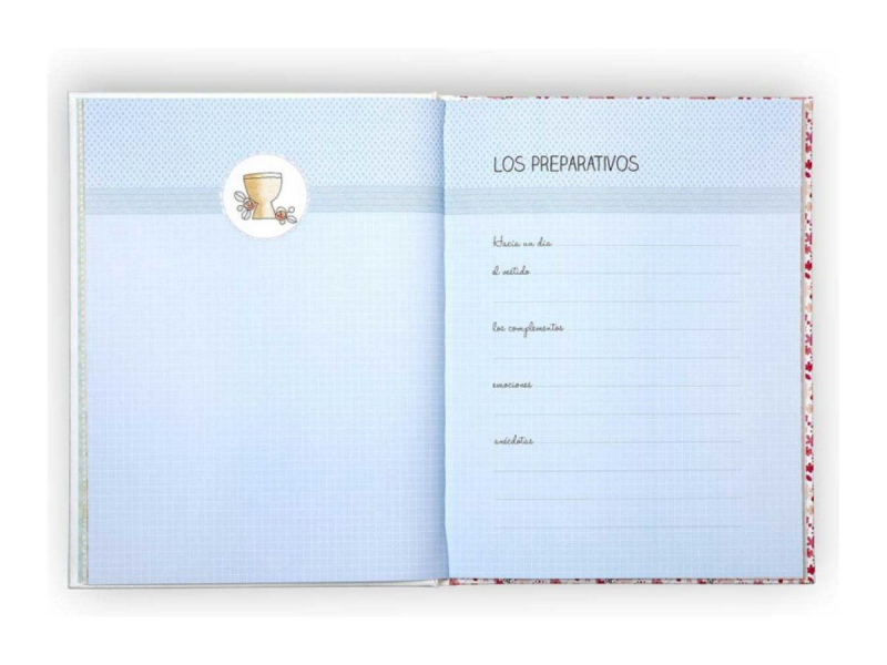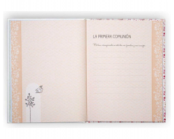 Cuenta con más de 60 páginas para rellenar con todos tus recuerdos de la comunión entre firmas, fotos, recordatorios, invitados, regalos... Las primeras 20 van decoradas a todo color mientras que el resto son completamente lisas para que las completes a tu gusto.