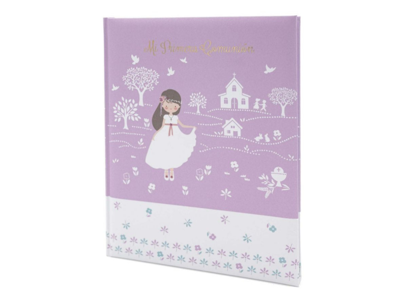 Libro de firmas de Mi Primera Comunión con portada y contraportada de tapa dura acolchada.
