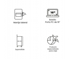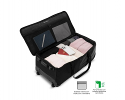Moverte con ella es muy sencillo, puedes trasportarla tanto de las asas con cierre de velcro que lleva en el frontal como del mango extensible. Además, gracias a los materiales de los que está hecha, como el RPET (botellas plásticas recicladas), presenta un diseño resistente y respetuoso con el medioambiente.