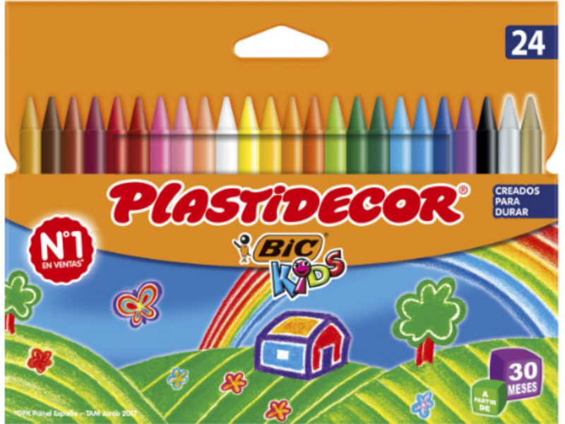 Lápices cera plastidecor, caja de 24 colores surtidos (incluye plata y oro)